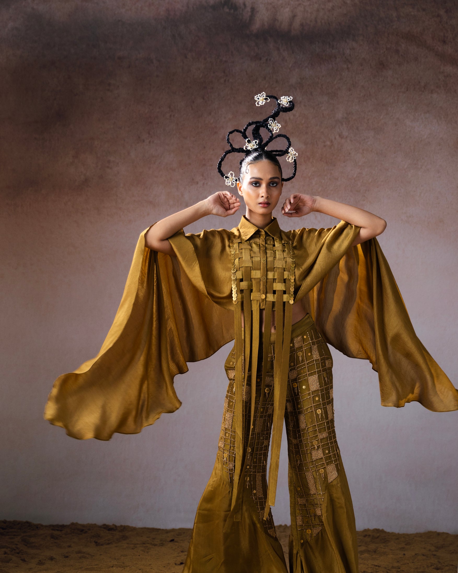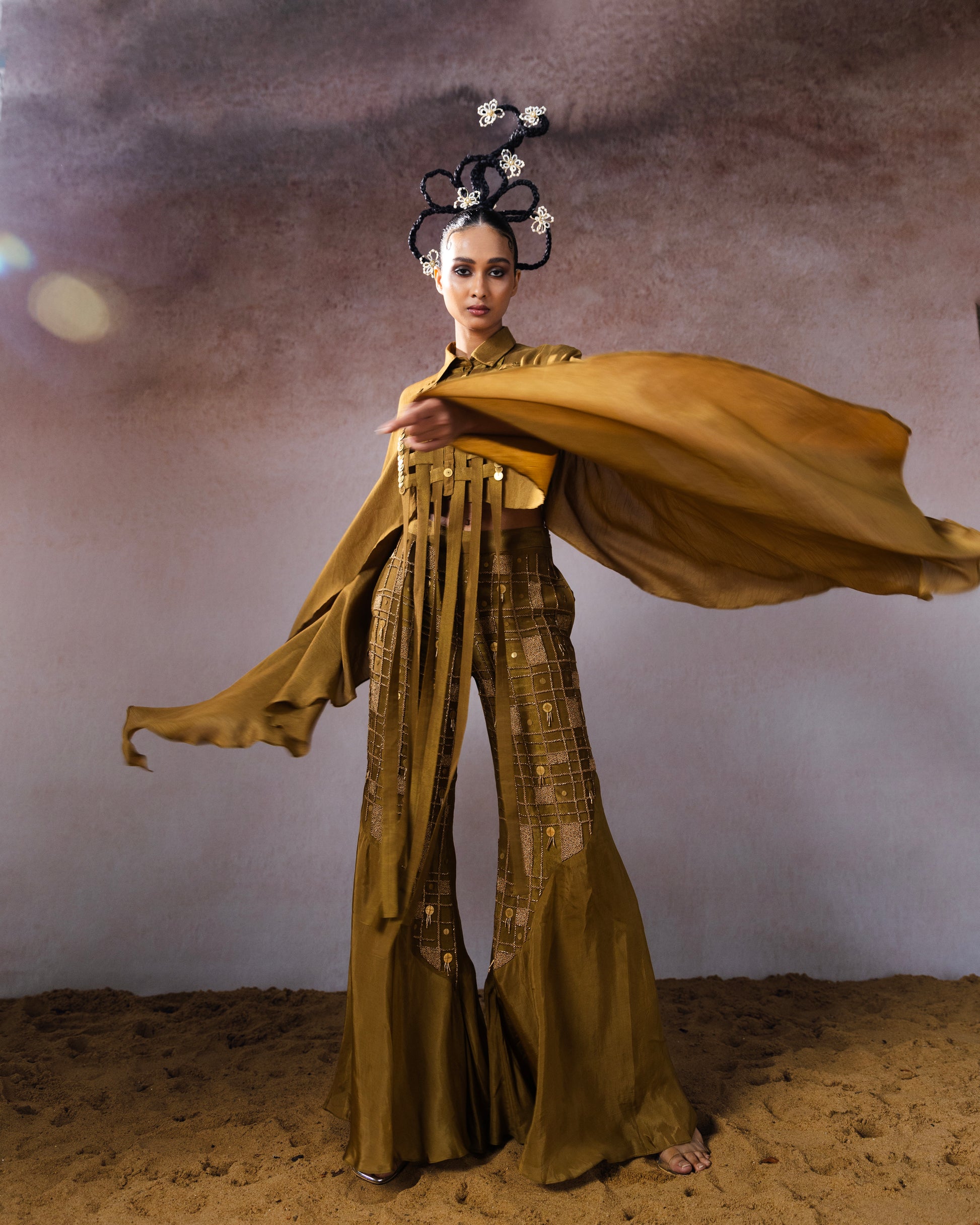 No.of components/pieces in the set: Cape, Bustier & Pant (3)