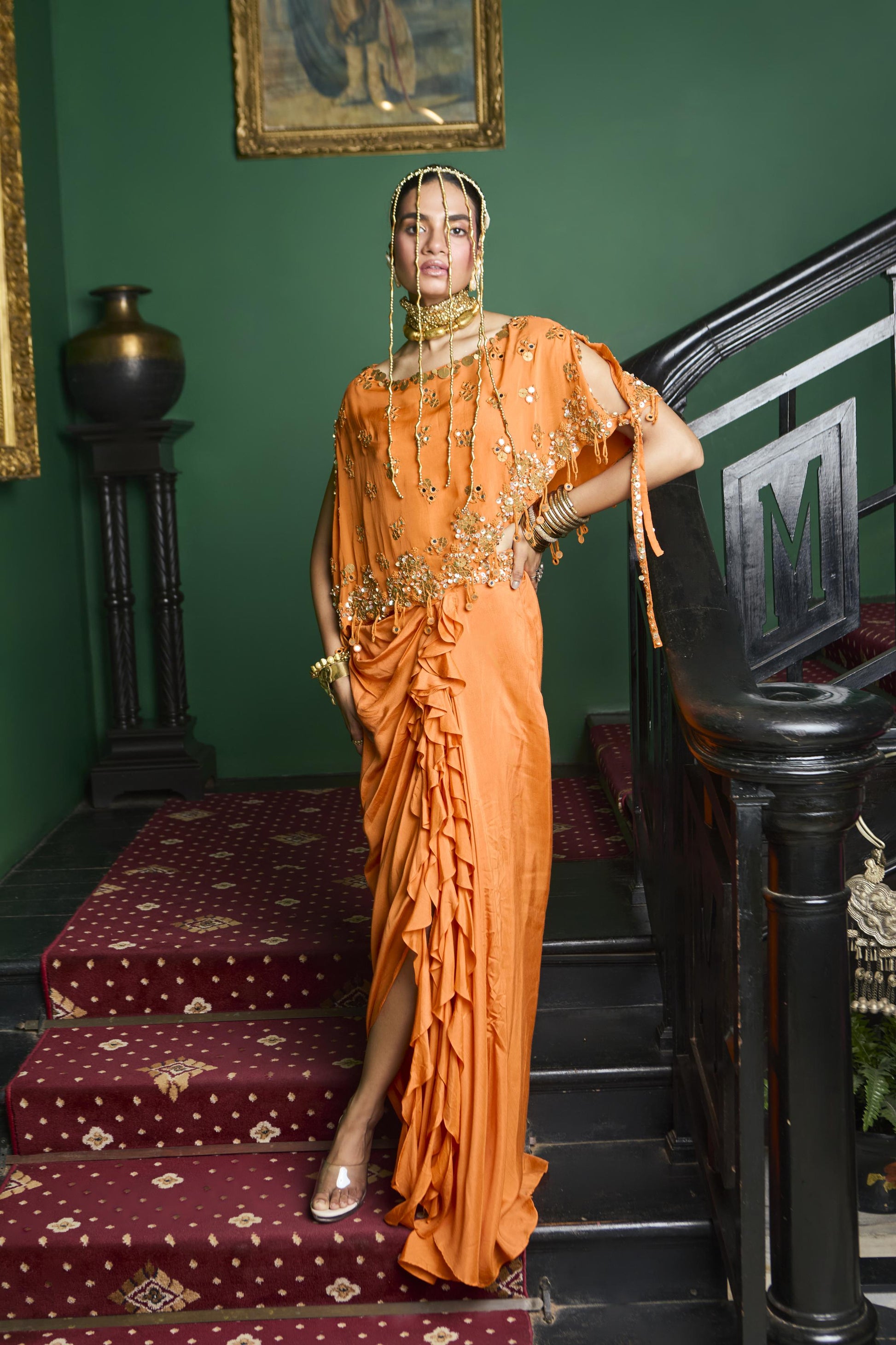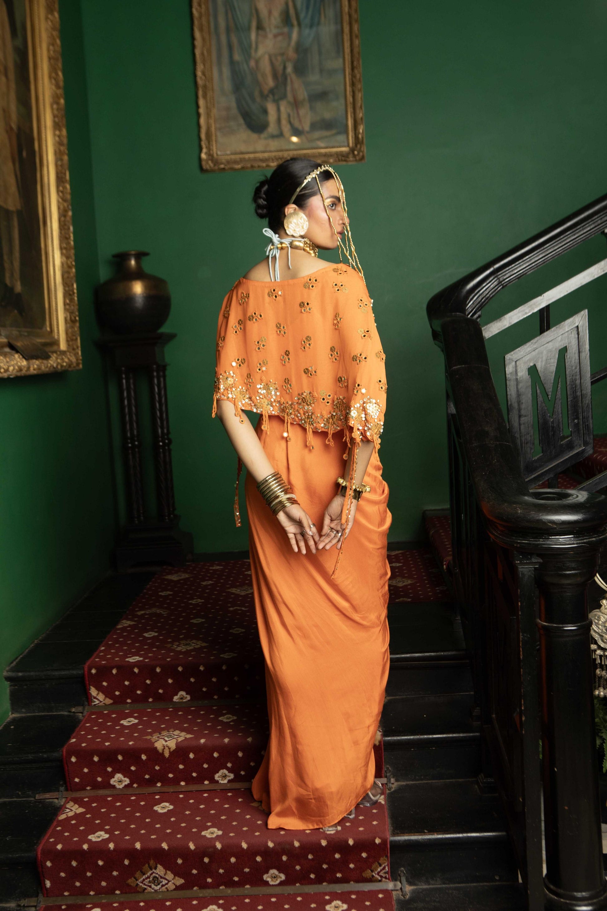 "Amber Rind" Cape With Bustier & Drape Skirt