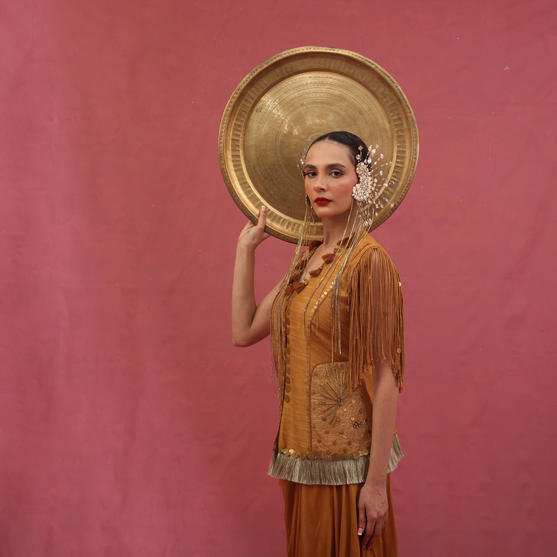Fringed Embroidered Waistcoat with Pickup Skirt