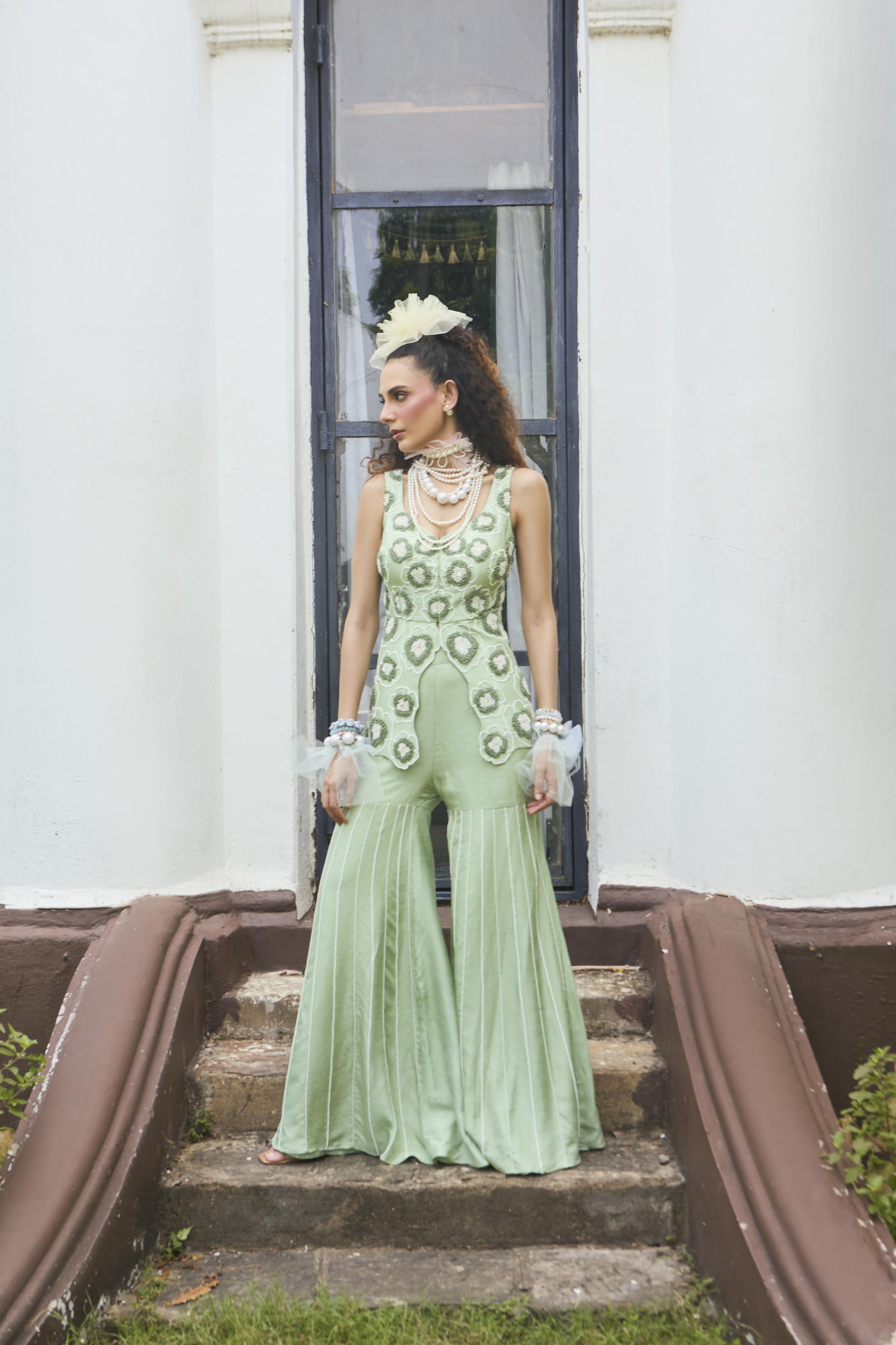 Geometric Petal Top & Flared Pants