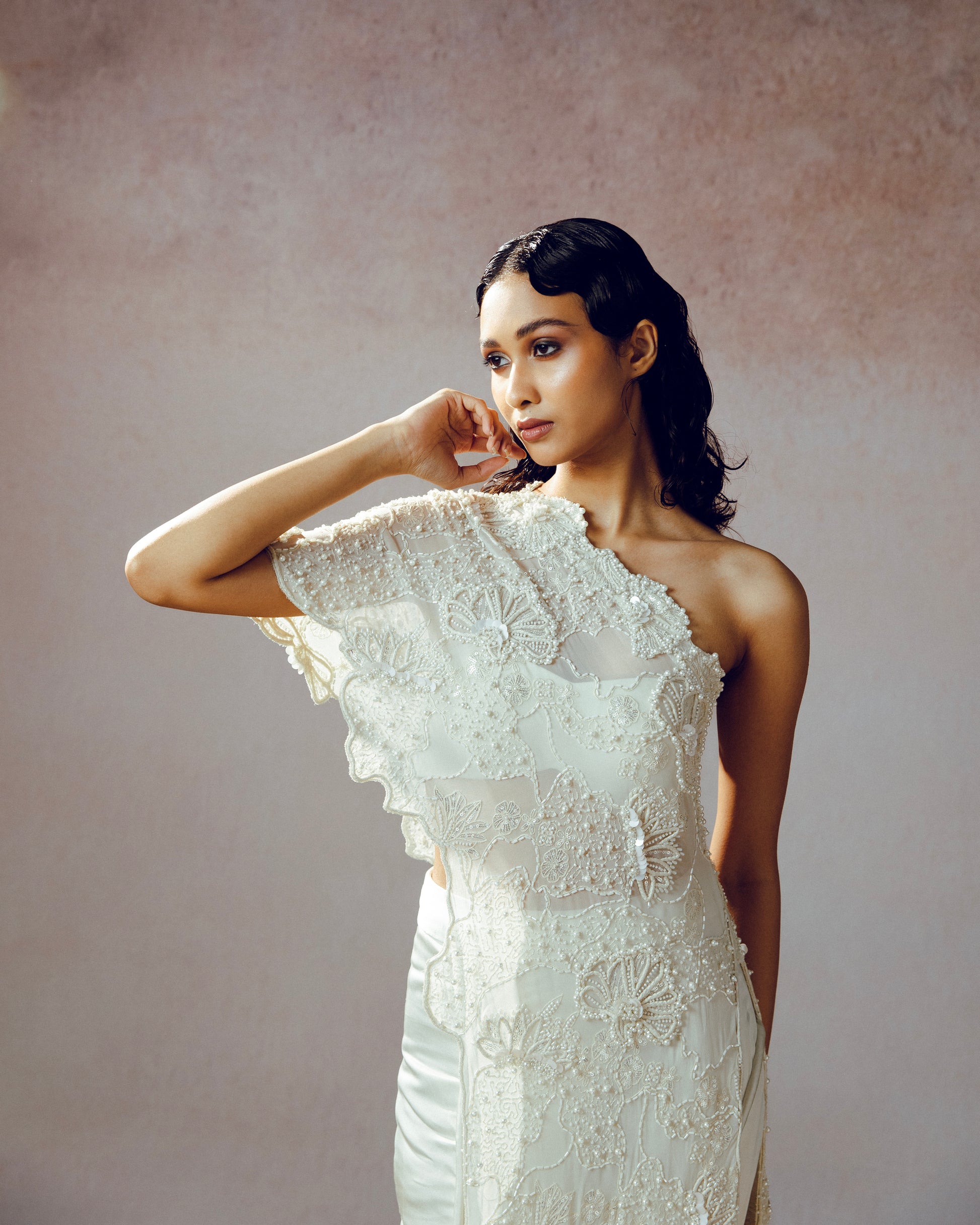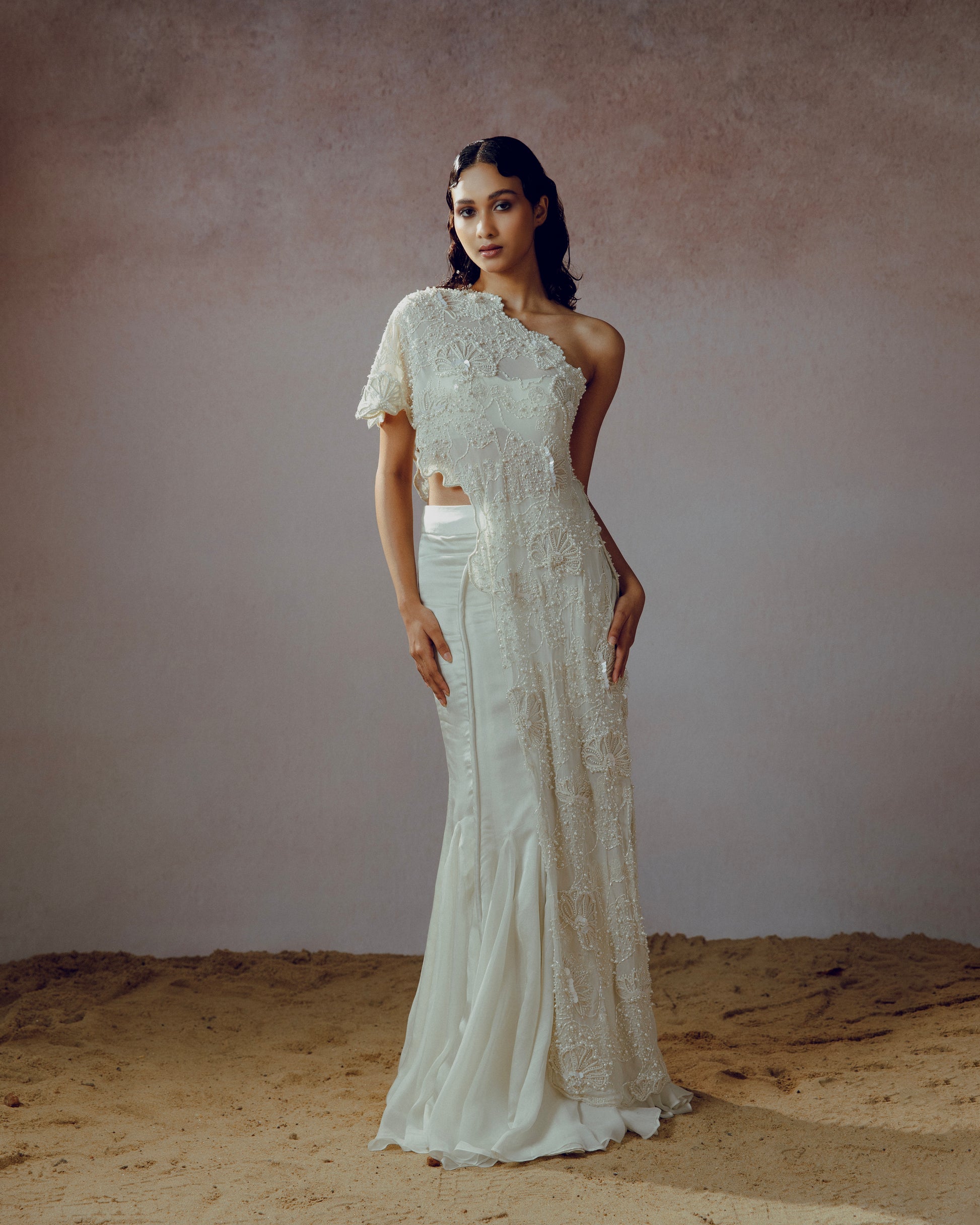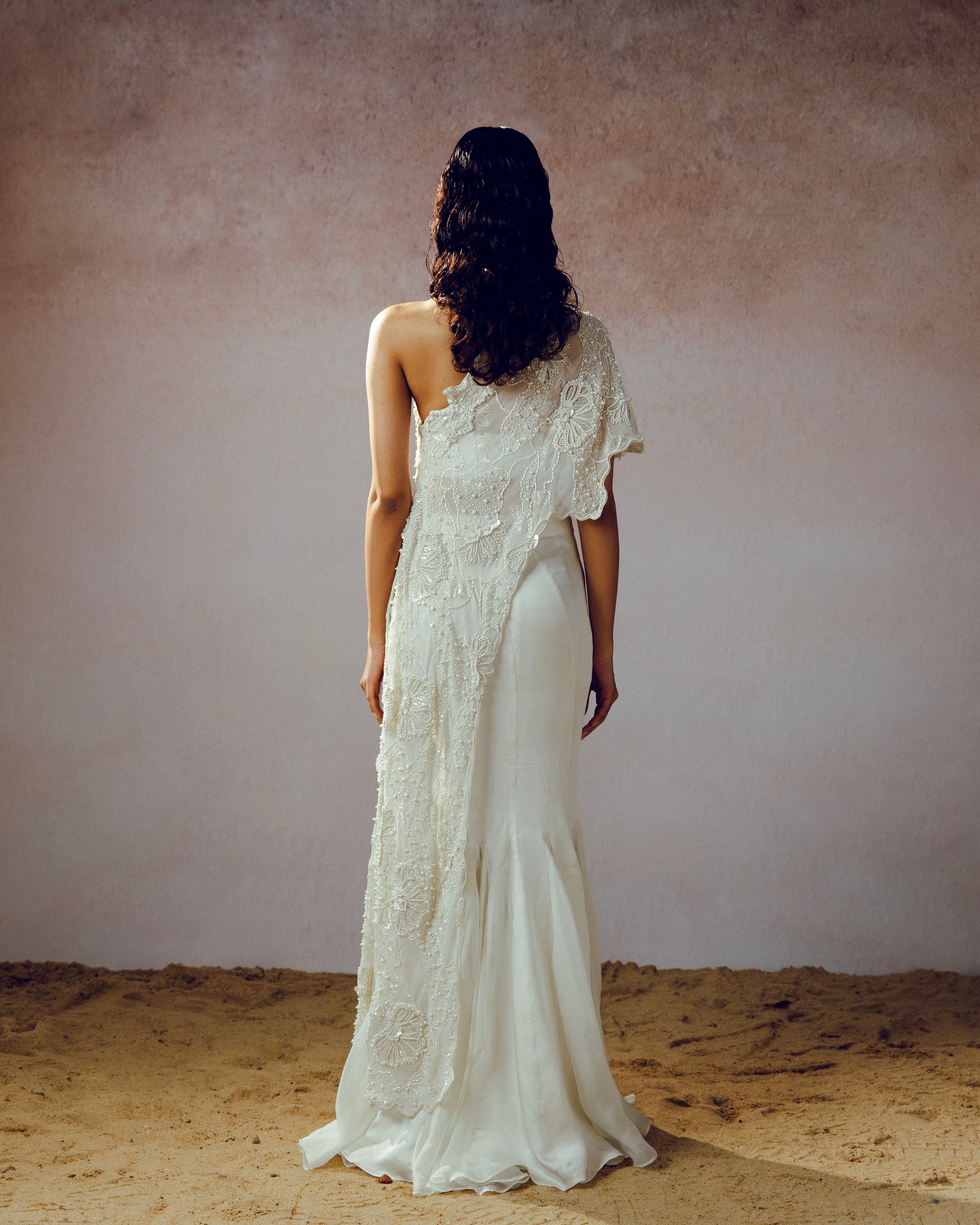 No.of components/pieces in the set: Cape, Bustier & Skirt (3)