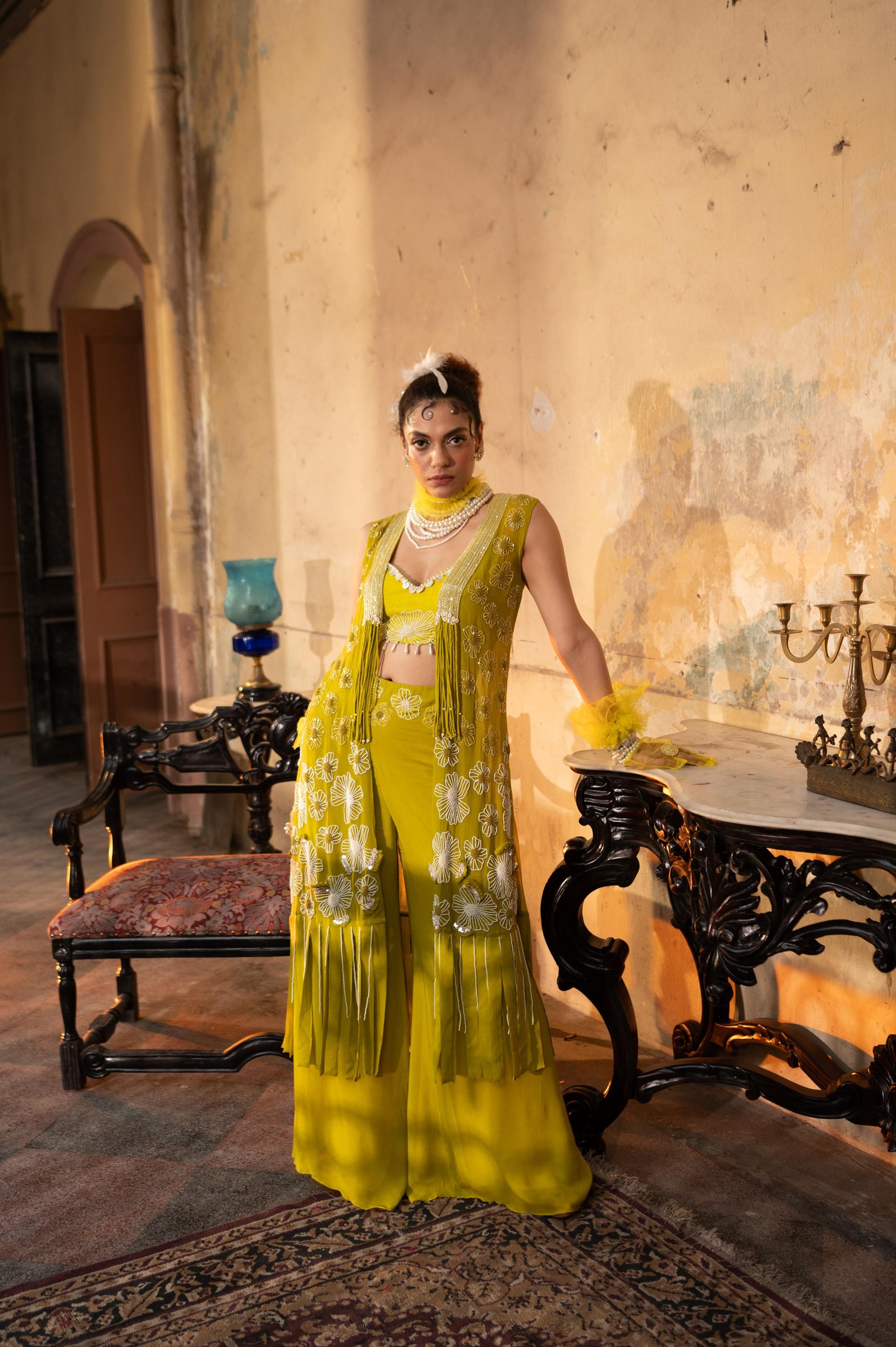 "Fennel" Jacket with bustier & flared pants